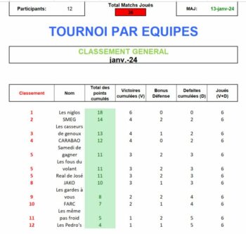 Tournoi interne par équipe 2024